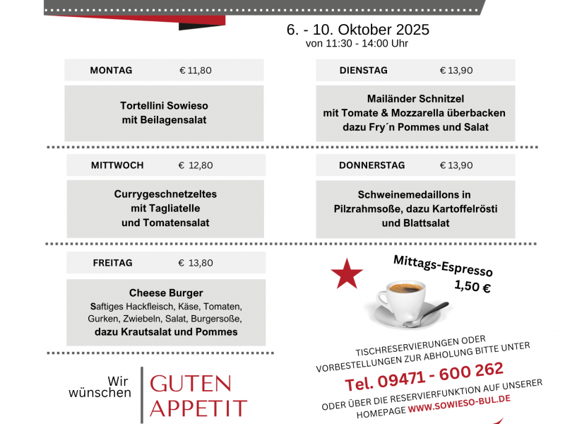 Außerhalb unserer Speisekarte bieten wir Ihnen nach Absprache auch auf Sie abgestimmte Menüs an.
